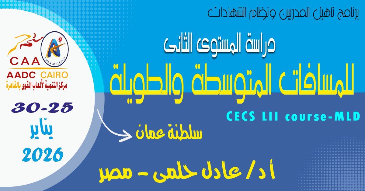 | 1 | دراسة المستوى الثانى للمسافات المتوسطة والطويلة | 2026/1/30-25 | أ. د عادل حلمى | سلطنة عمان | المزيد من التفاصيل |